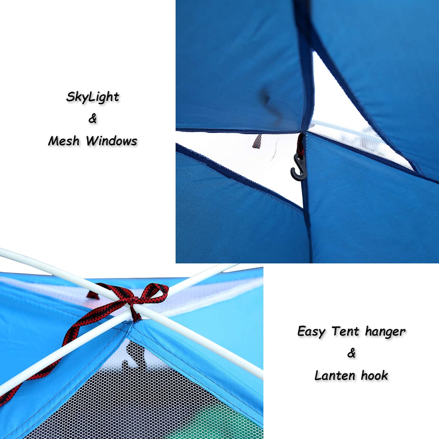 [Great Family Connection]: Our camping tent can also be a family tent for bonding with your family! Mesh pockets for your child's toys, phones, and lamp hook for the night.