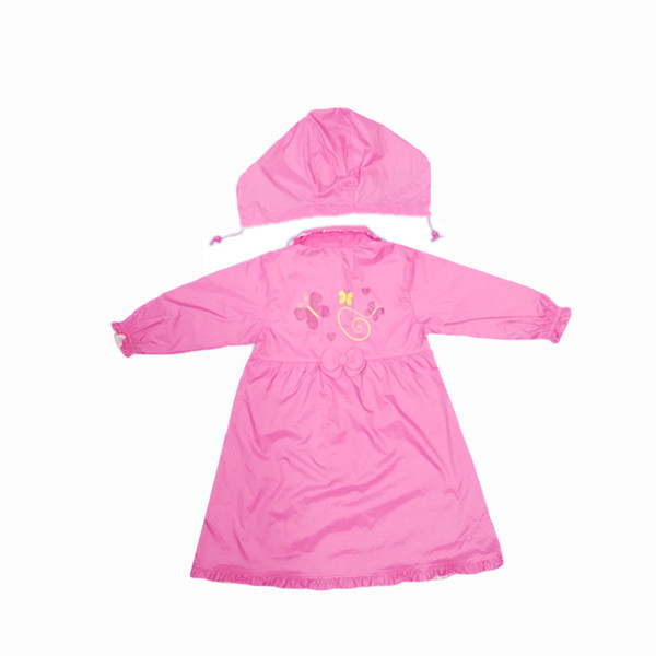 Design:The hood is demountable,it is very easy and convenient for our children.Another there is many border deign for the raincoat.It is not only one raincoat.In fact it is one more fashion waterproof cloth.