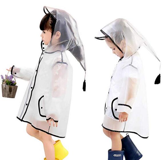 Lovely cartoon printing can be customized printing transparent ribbon hat brim waterproof raincoat for children |