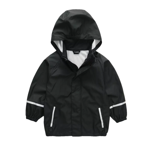 Design:For the jacket with hood design,the hood is detachable.It is more convient.Another there is the elastic brand on the cuff to adjust the cuff size.There is the reflector on the cuff and pocket.Keep our chidlren more safe in the rain day or dark day.