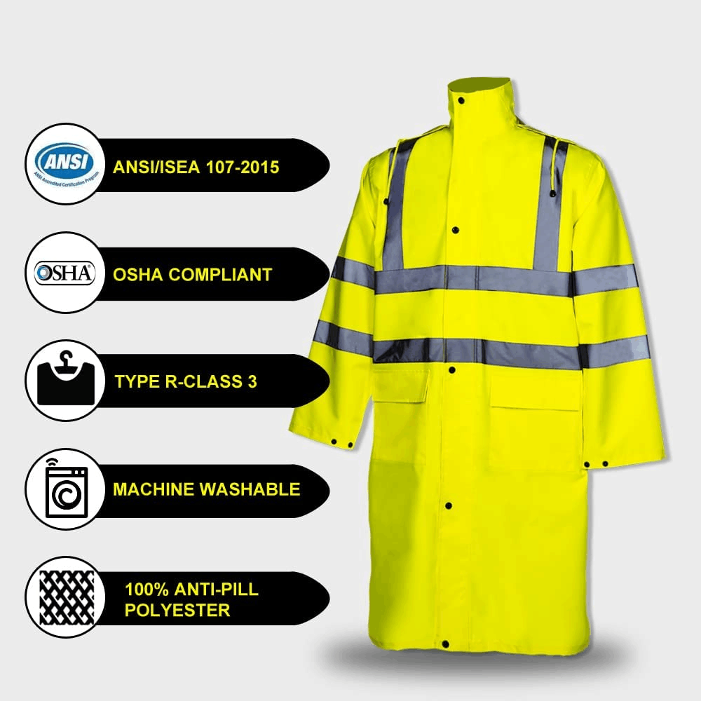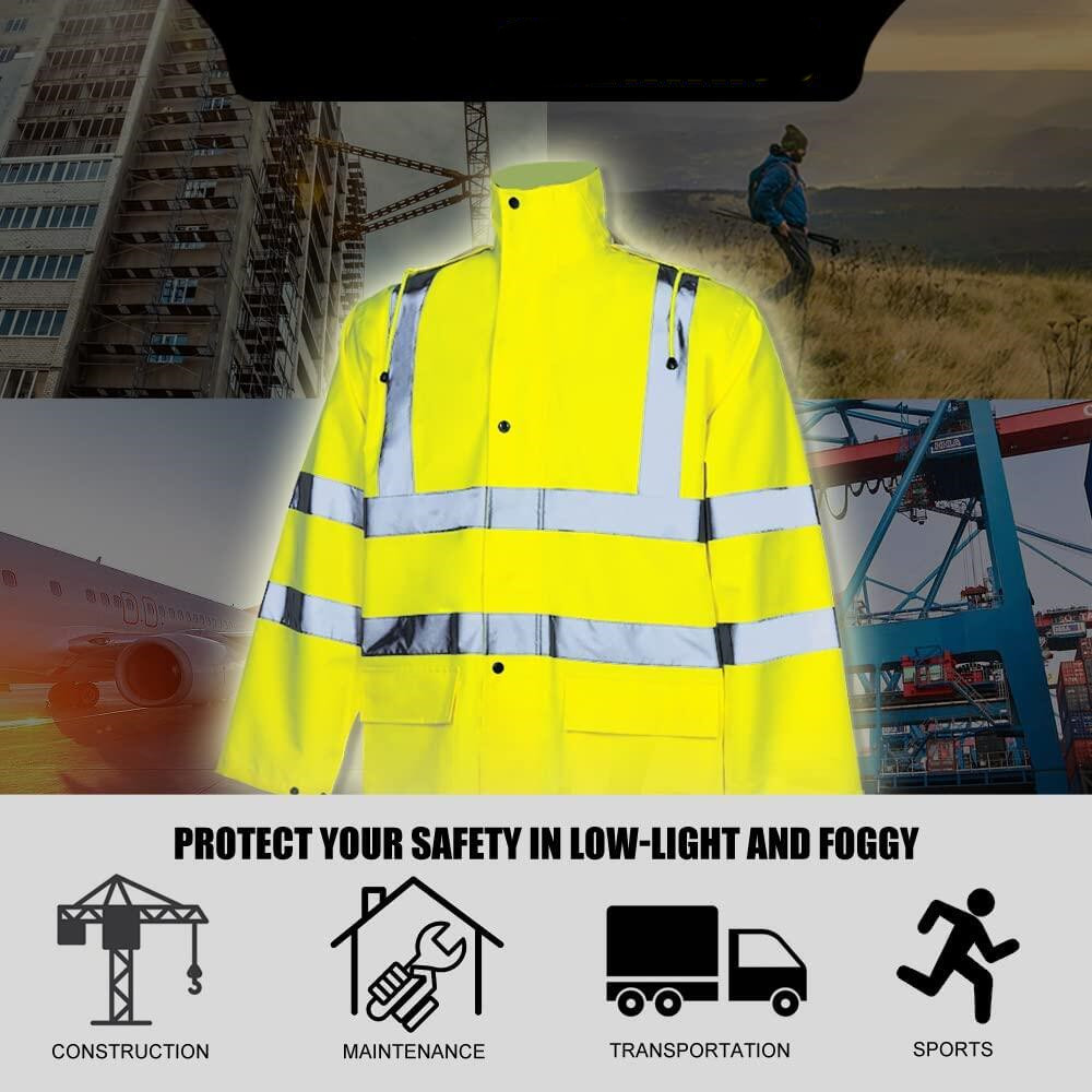 Outdoor duty raincoat with reflective strip is a high performance and functional raincoat. It is more durable than ordinary raincoats and is more suitable for high-intensity places such as outdoor duty and sports.