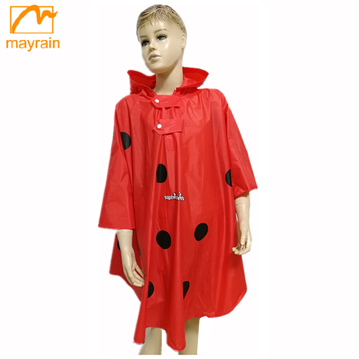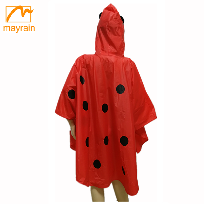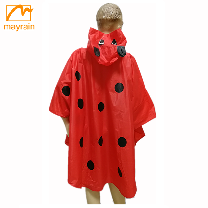 Design:There is the hood for the rainponcho.Even we make the animal design on the hood.Another there is the button on the neck,it is easy to take on and take off.Another we can make the OEM printing on over the poncho.