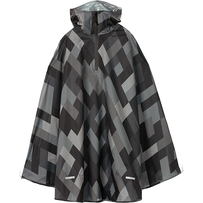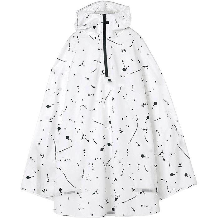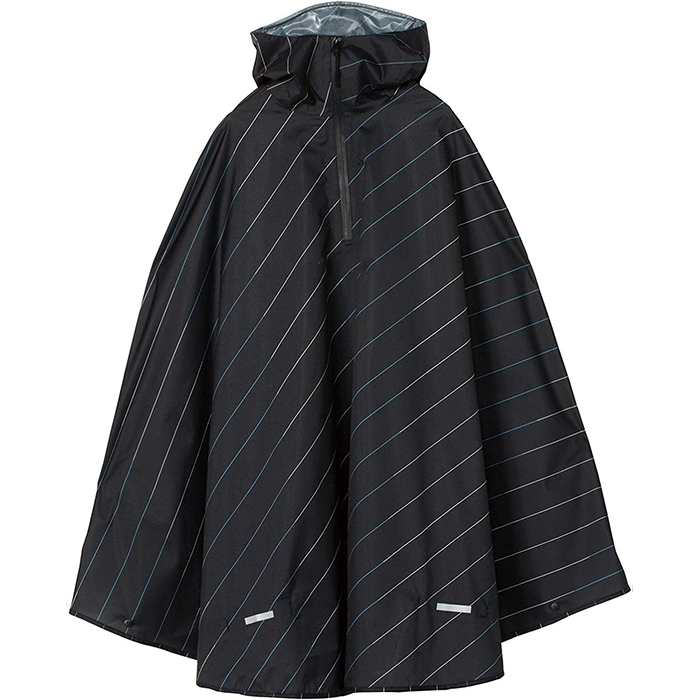 What I recommend to you is this stylish poncho made of polyester and polyurethane coating. Polyester is a breathable, stretchable, durable, hygroscopic fabric that is ideal for long-term outdoor applications. Polyester does not absorb water and its water resistance increases with the number of threads. However, polyester is not completely waterproof, which is why we need to coat it with PU material.