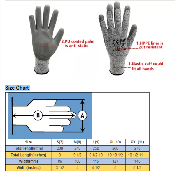 | Product Name: | PU Coated Cut Resistant Work Gloves Level 5 anti cut glove |