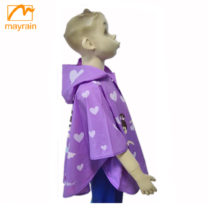 Design:There is the hood for the rainponcho.Even we make the animal design on the hood.Another there is the button on the neck,it is easy to take on and take off.Another we can make the OEM printing on over the poncho.